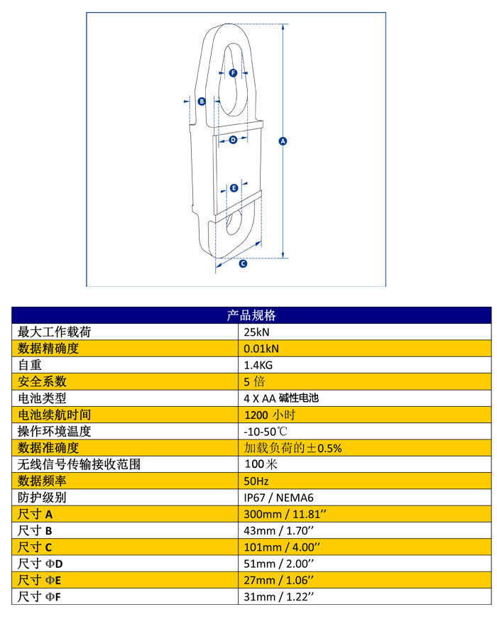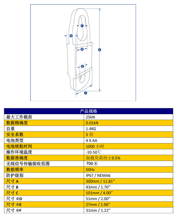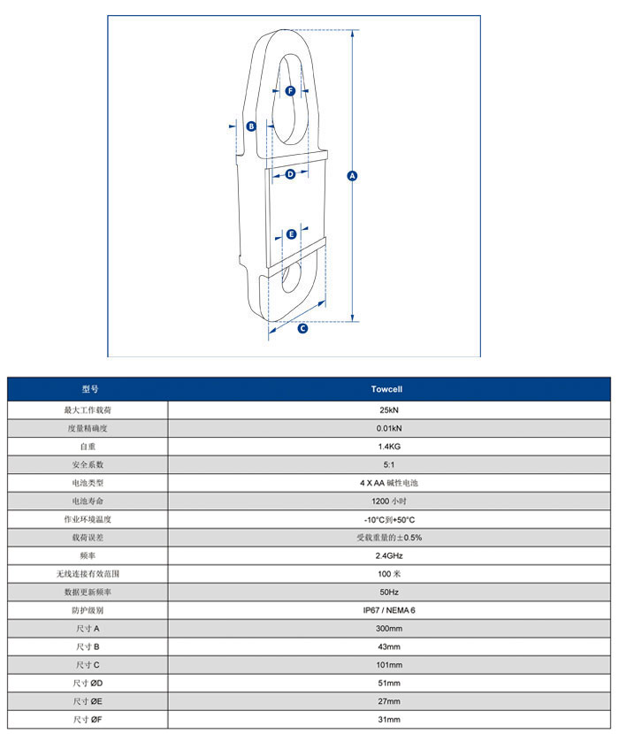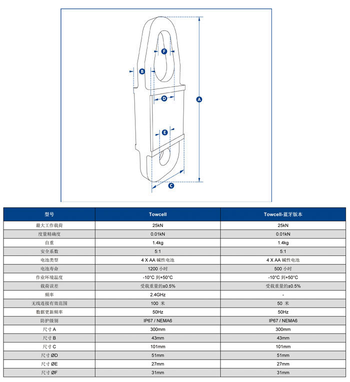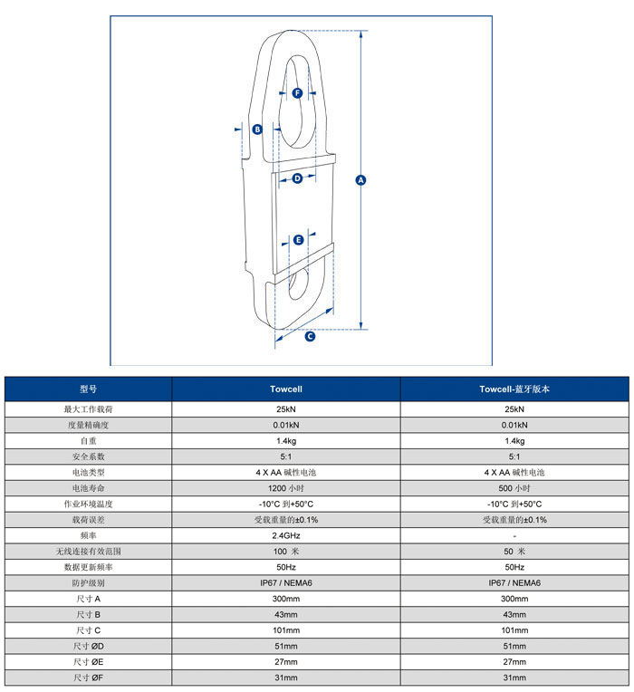 此產(chǎn)品的最大工作載荷為25kN(相當(dāng)于牽引質(zhì)量2.5噸),主體由航空用鋁合金材質(zhì)構(gòu)成,使其自重保持在更低的水平,更大程度方便使用者安裝操作和搬運(yùn)移動(dòng)。其內(nèi)部核心構(gòu)造現(xiàn)在采用了獨(dú)立式的密封防護(hù)構(gòu)造,使其防護(hù)等級(jí)達(dá)到IP67/NEMA6防水環(huán)境保護(hù)的要求,即便使用中電池封蓋丟失,設(shè)備仍可以繼續(xù)正常工作。利用兩節(jié)普通的堿性電池,設(shè)備續(xù)航能力便可達(dá)到1200小時(shí)。