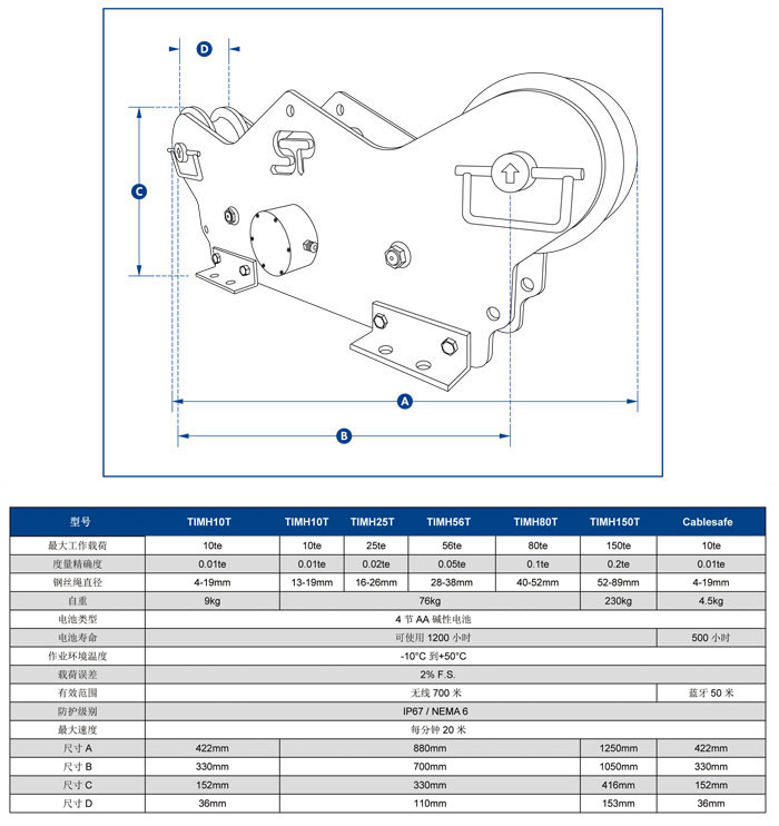 * 負(fù)載能力范圍從10噸到80噸,鋼絲繩直徑可達(dá)52毫米。