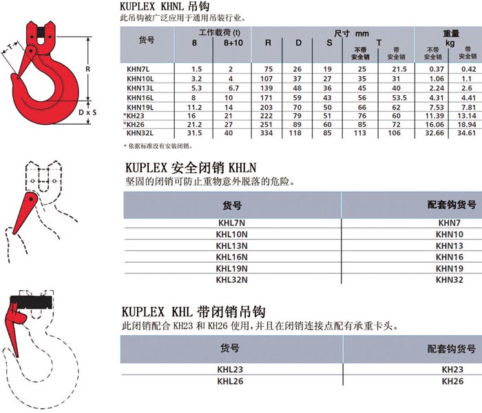 Kuplex KHNL 吊鉤產(chǎn)品詳情: 請致電:13931305891, Email:info@skiplifting.com