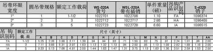 備注:試驗載荷最大為2.5倍的額定工作載荷;破斷載荷平均為額定工作載荷的5倍。