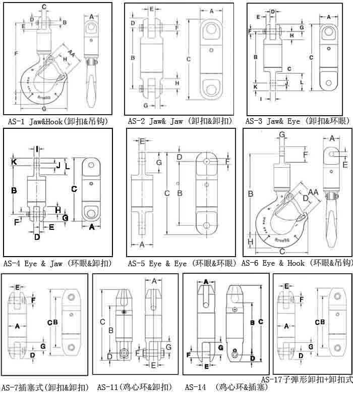 備注:極限工作載荷為5倍的額定工作載荷。