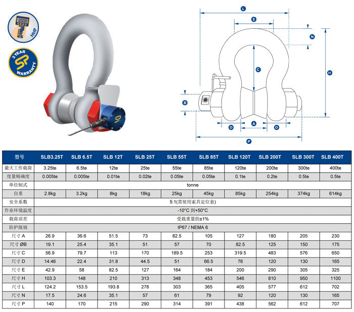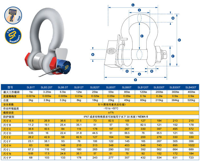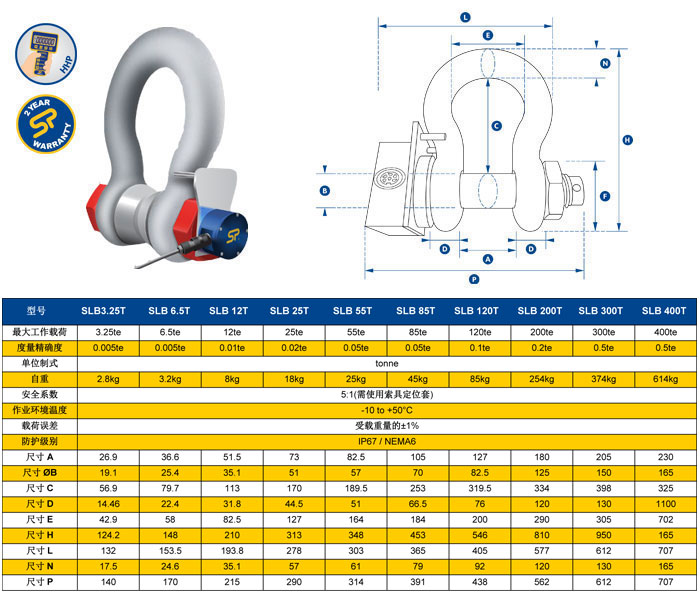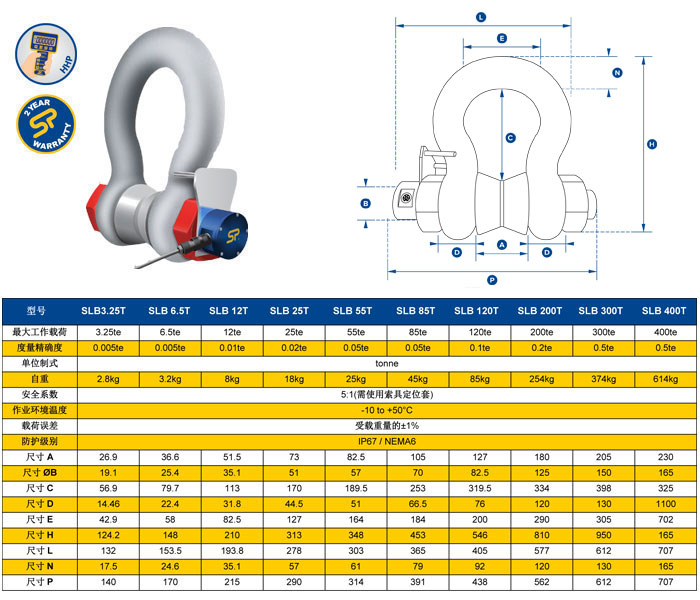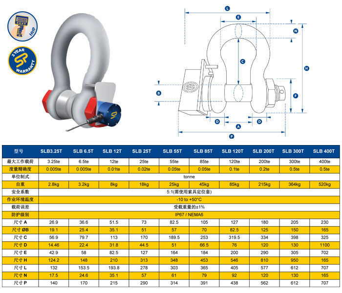 這款設(shè)備的標(biāo)準(zhǔn)負(fù)載能力范圍從3.25噸到400噸,特殊定制情況下可達(dá)到1550噸。對(duì)于負(fù)載能力低不超過120噸的設(shè)備,我們采用Crosby的G2130卸扣和G2140卸扣;對(duì)于負(fù)載能力超過120噸的設(shè)備,我們則采用GN的H10型卸扣。