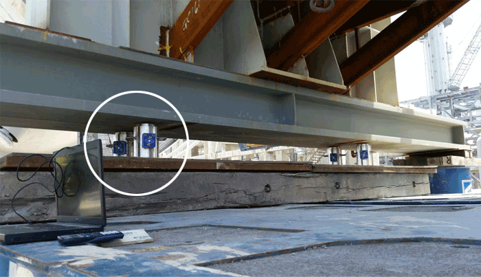 負責此項作業(yè)任務的薩倫斯公司項目經理霍特先生表示,我們利用結構支撐梁之間的距離以及各臺無線壓力傳感單元監(jiān)測到的分重數(shù)據(jù)信息,快速確定了此蒸餾塔的準確重心位置,為下一步吊裝作業(yè)的實施打下了很好的基礎。另外,此信息還可幫助我們來驗證之前兩臺用來將此蒸餾塔進行從平躺到直立姿態(tài)翻轉作業(yè)的起重機的負載大小信息進行驗證。