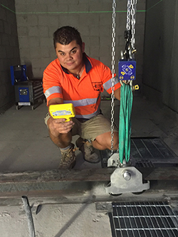 HES公司的項(xiàng)目經(jīng)理解釋道,我們利用了公司特有的一種表面安裝測試軌道,通過與合成纖維索具結(jié)索以達(dá)到試驗(yàn)負(fù)荷測試所要求的額定負(fù)載水平。速得無線智能卸扣為我們節(jié)約了現(xiàn)場環(huán)境下很有限的凈空高度空間。