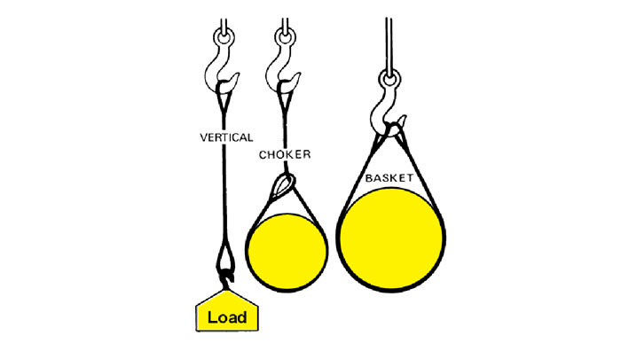 索具的負(fù)載能力也是按照這三種基本的結(jié)索方式確定的:直吊、籃吊和封閉吊(也可稱(chēng)作穿套吊)。