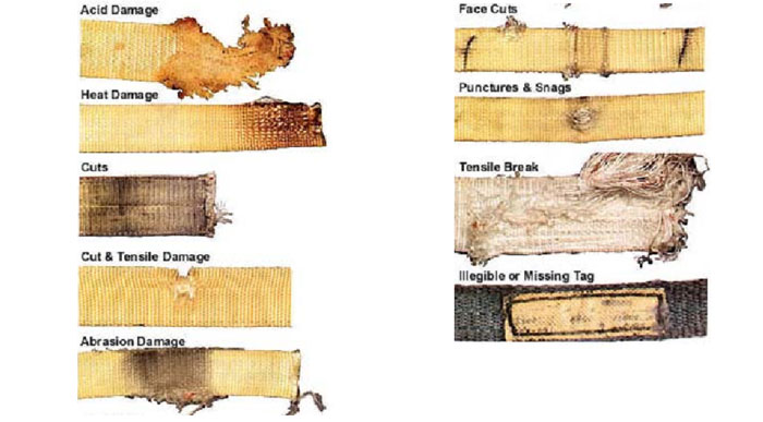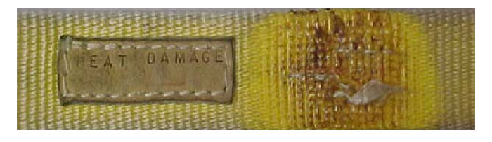 — 任何形式的柔性纖維吊帶索具只要接觸環(huán)境溫度超過(guò)65℃,必須撤下并停止使用。