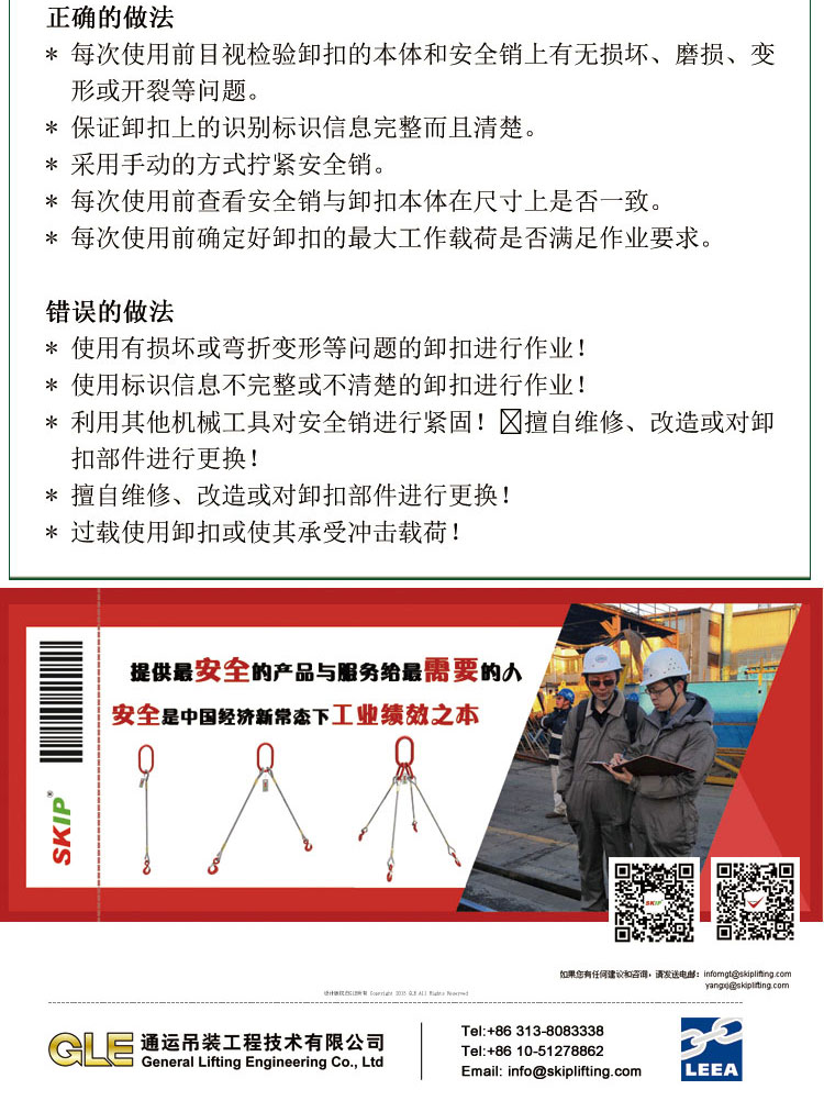 鄭重聲明:m.qiongning.cn為我公司合法合規(guī)官方網站。 GLE為美國CROSBY及英國Straightpoint在中國大陸合作伙伴, 進口Kuplex8+10品牌索具系列輔件產品國內供貨商!假冒偽劣者請注意國外制造商可能發(fā)起的知識產權法律訴訟風險。 凡屬利用我公司SKIP品牌提供相關產品與服務業(yè)務,請及時與我司進行真實性驗證。驗證郵箱:郵箱:info@skiplifting.com