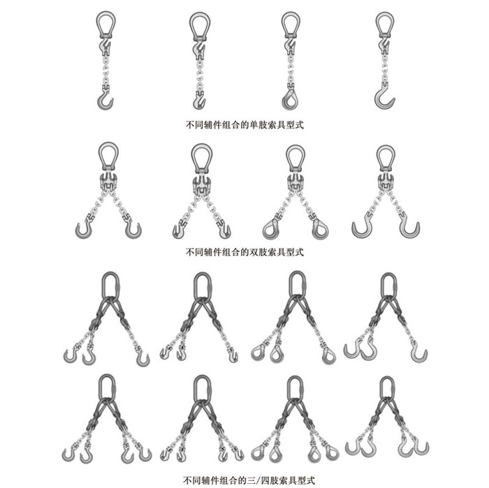 通常,吊裝鏈條索具(以下簡稱“吊鏈”)是由主環(huán)、連接環(huán)、鏈條及吊鉤等輔件連接而成,如果在使用中需要調(diào)節(jié)吊鏈長短的話,就需增加調(diào)節(jié)器來達(dá)到效果。這樣的吊鏈勢必會(huì)輔件多、自重大、成本高。集成主環(huán)集強(qiáng)力主環(huán),連接環(huán),抓鉤及調(diào)節(jié)器的主要特性和功能于一身。