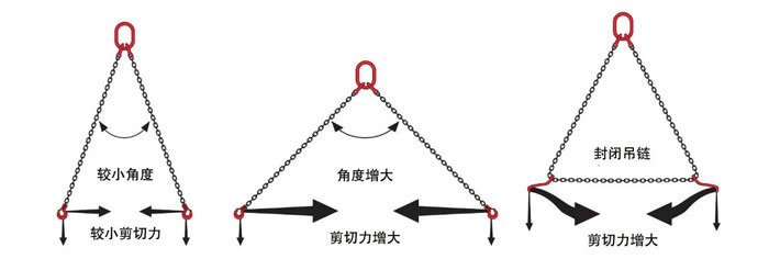 隨著角度的增加,多肢吊鏈會(huì)在被吊物上產(chǎn)生不斷加大的剪切力。