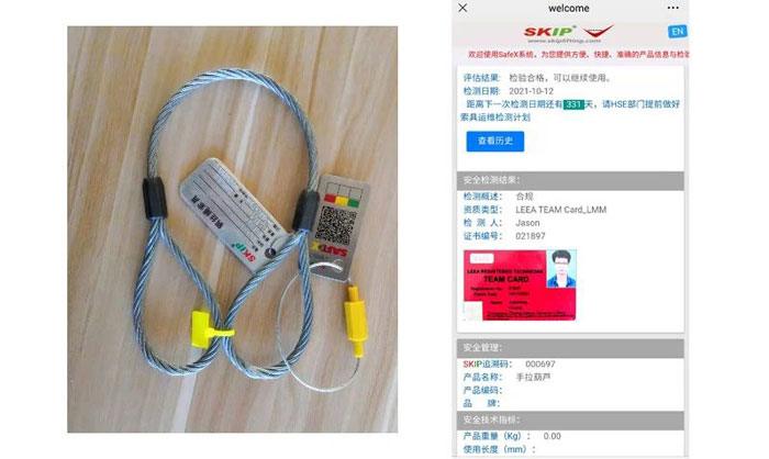 ✔ 索具直徑、出廠日期、長度(有效或者使用長度)、生產序列號(唯一性、可追溯性)