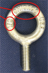— 環(huán)眼螺栓吊點安裝到盲孔上時,保證螺桿螺紋部分咬合的長度是螺紋直徑的至少2.5倍