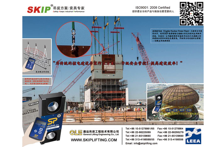 最近一段時間,速得智能無線測力環(huán)設(shè)備在美國佐治亞州韋恩斯伯勒市的沃格特勒核電站(Vogtler Nuclear Power Plant)工程項(xiàng)目施工的吊裝作業(yè)過程中派上了大用場!結(jié)合使用速得智能無線測力環(huán)以及速得所專有的應(yīng)用軟件,西比埃公司(CB&I)得以在施工過程中僅通過一臺電腦的顯示屏實(shí)現(xiàn)同時監(jiān)控多達(dá)24臺無線測力環(huán)設(shè)備的實(shí)時動態(tài)負(fù)載信息,確保項(xiàng)目施工的全過程安全。